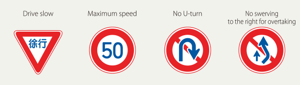 There are three types of road signs in Japan. The first type offer guidance to drivers, including directions, locations, route numbers. These are blue on regular roads, and green on toll roads. The yellow triangular signs are warnings of danger and indicate areas of caution. Finally there are signs which specify rules of driving, such as the speed limit and where you have to stop. These signs are round, or in the shape of an upside down triangle. It is particularly important to be aware of signs indicating traffic laws. Generally speaking, a red sign or an “X” indicates something is forbidden, while blue means that it is allowed. The Japanese word for STOP is “止まれ”. Make sure to remember this. When you see a number written in a red circle, it indicates the speed limit. If you get caught for breaking a law, you will not be able to enjoy the rest of your trip. Make sure to remember the rules for your own safety and fun!