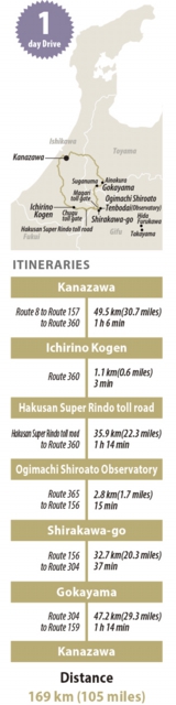 When you drive back to Kanazawa, you can take Route 156 north and Route 304 northwest that lead directly to the city center.